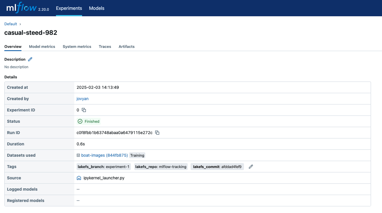 - Experiment Reproducibility: By leveraging MLflow's input logging capabilities alongside lakeFS's data versioning, you can precisely track the specific dataset version used in each experiment run. This ensures that experiments remain reproducible over time, even as datasets evolve.